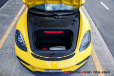 Notons encore que, malgré cet esprit très sportif, notre GT4 dispose de deux généreux coffres (150 litres à l’avant et 270 litres à l’arrière), comme un Cayman normal, de quoi facilement partir en week-end à deux, avec ou sans option « trackday ».