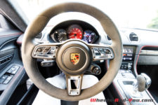 C’est vraiment là que le cœur de cette GTS est différent, car le constructeur a monté une version « réduite » de son flat 6 cylindres de 4 litres. Pour tout dire, c’est une version limitée du moteur proposé pour la GT4 et ça déménage !