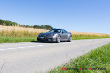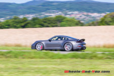Avantage de la boite manuelle, qui offre par ailleurs un maniement au top avec un verrouillage des rapports viril, les sensations sont déjà au rendez-vous à vitesse relativement raisonnable. Le même exercice avec une version PDK, voir aussi avec une 991 GT3 RS disposant de cette même transmission, demande d’augmenter drastiquement le rythme pour obtenir le même feeling et dès lors, la raison n’est carrément plus du tout au rendez-vous.