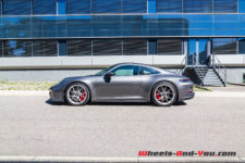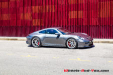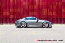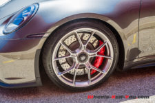 Les grosses jantes, 20 pouces à l’avant et 21 pouces à l’arrière, combinées à une garde au sol plus basse, confèrent une ligne très dynamique, mais l’œil non averti ne verra là qu’une « simple » Porsche 911, surtout avec cette couleur.