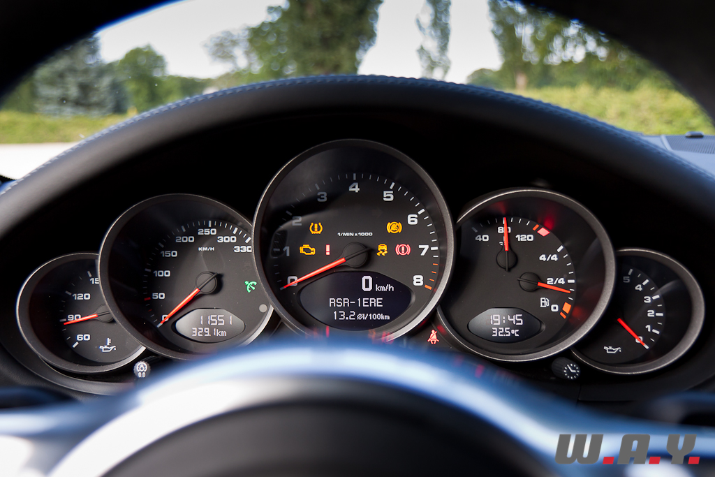 En termes de consommation, mes calculs à la pompe m’ont révélé une moyenne de 15.7 l/100 km. Sachant que sur le millier de kilomètres couverts lors de cet essai je ne me suis pas privé d’exploiter le potentiel de feu de cette 911 sur tous types de tracés, c’est une valeur honorable. Il est par ailleurs très aisé de descendre en-dessous des 10 l/100 km à vitesse stabilisée sur autoroute.