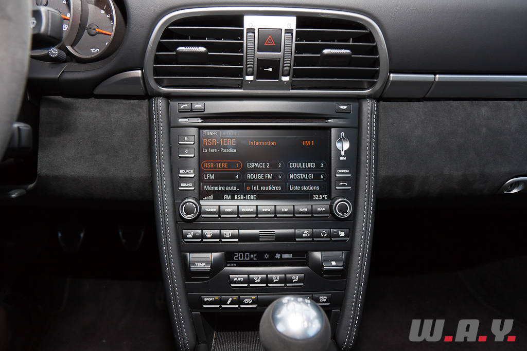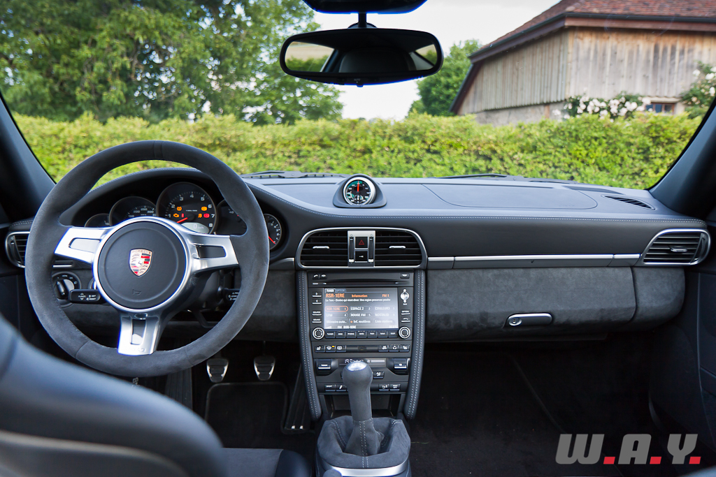 L’intérieur de cette Porsche apporte tout le confort d’une GT, dans une ambiance sportive et cossue dont la qualité tant des matériaux que de la présentation ne souffrent d’aucune critique. Les plus tatillons d’entre vous verront à redire lorsque je mentionnerai le réglage manuel en hauteur et longitudinal des sièges, tandis que celui du dossier reste électrique. Un compromis qui ne m’a pas dérangé outre mesure et qui s’inscrit une fois encore dans l’esprit de cette 911 : confortable, mais pas trop.