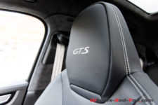 La déclinaison GTS apporte également son lot d’éléments uniques avec une finition en Alcantara pour différentes parties intérieures, des badges GTS y compris sur les appuie-têtes, du cuir, des baguettes de seuil de porte en aluminium brossé noir, etc.