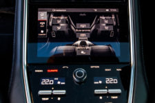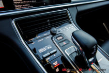 Là encore, très peu de dissemblances avec la Panamera classique, et pour cause. A l’exception d’un coffre qui passe de 500 à 405 litres, il y a juste quelques boutons en plus dans cette version. Ce distinguo au niveau du volume du coffre est bien sûr liée aux 16.2 kWh de batteries supplémentaires que les versions E-Hybrid embarquent. Pour gagner encore un peu de place, Porsche a également opté pour un réservoir de carburant plus petit en passant ce dernier de 90 à 80 litres… ce sacrifice au niveau de l’autonomie « essence » est partiellement compensé par les batteries.