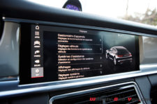 Globalement, la qualité des matériaux et l’assemblage sont irréprochables, même si des gadgets du type assistance de fermeture des portes me semblent totalement superflus sur ce type de véhicule. De plus, même avec une durée d’essai plus longue, je confirme que l’interface « tactile » sur la console centrale n’est pas bonne car elle oblige de quitter la route des yeux quand le conducteur cherche à régler les suspensions, le dégivrage de la lunette arrière ou encore le chauffage du siège. Je vous parle aussi du bouton pour ouvrir le coffre couplé aux boutons des fenêtres avec la garantie de vous tromper au moins une fois et d’actionner l’ouverture du coffre… sans pouvoir le refermer. Très sympa quand on se trouve dans le trafic, qu’il pleut et qu’il faut sortir de la voiture pour refermer le coffre.
