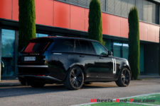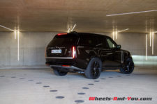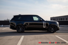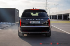 C’est l’arrière qui interpelle probablement le plus avec des optiques verticales teintées de noir qui disparaissent totalement sur notre véhicule d’essai de couleur « Santorini Black ». Encore une fois, c’est moderne et stylé et ça questionne quand on se focalise sur ce détail. Toutefois, en prenant du recul pour admirer l’entièreté de ce nouveau Range Rover, cela ne choque plus.