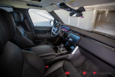 A part ce détail qu’on assimile assez vite, tous vos déplacements se font dans un confort impérial. Il y a tout d’abord l’amortissement qui absorbe la quasi-totalité des imperfections de l’asphalte et cela même sur des tracés défoncés, puis le silence à bord. Le niveau d’isolation phonique est impressionnant et couplé à la douceur procurée par l’excellent travail des suspensions, cela élève l’expérience presque au niveau d’une Rolls-Royce. Oui, je fais souvent référence au niveau ultime de l’automobile mais c’est simplement parce que selon moi, c’est la seule marque qui offre un niveau supérieur en matière de confort. L’expérience à bord de ce Range Rover allie volupté et quiétude, c’est remarquable. A noter que c’était déjà le cas avec la version précédente mais cette nouvelle génération gagne encore en finesse et propose ainsi une véritable amélioration.