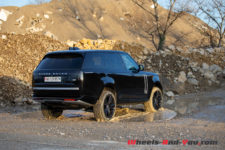Dernier test, la conduite tout-terrain. A part une brève escapade dans une gravière boueuse, je n’ai malheureusement pas pu profiter des réelles capacités de ce Range Rover. Reste que connaissant les valeurs de la marque, la multitude de modes à disposition, les blocages de différentiels, etc. je ne doute en rien de son potentiel. Mais comme je le disais au préalable, pas sûr que beaucoup de Range, surtout en finition Autobiography, affrontent ce genre de situation.
