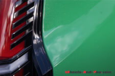 Notre R5 dispose également de l’option toit noir qui associe une bande de couleur rouge ou jaune délimitant la chape de l’auto. Nous avons hérité de la bande rouge et personnellement, je n’aime pas trop cette combinaison avec la teinte Green Pop. Si les coloris trop voyants vous déplaisent, la R5 arbore aussi un style attrayant en blanc. Ce sont surtout les robes foncées qui, je trouve, amenuisent son charme.