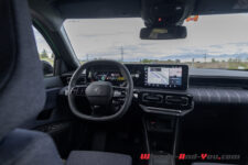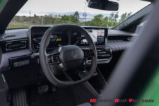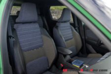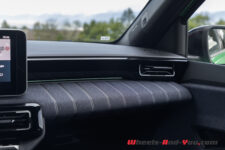L’effet est similaire en m’installant à bord : je suis sous le charme. Aussi bien en matière de présentation que pour le choix des matériaux, c’est super sympa et avec une qualité de finition de bonne facture, ceci malgré l’usage de plus de 40 kg de plastiques recyclés. Les assises sont très confortables et cela même sur long trajet. Coup de cœur pour le ciel de toit matelassé et les tissus utilisés pour habiller le tableau de bord et les sièges.