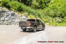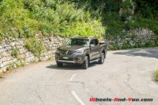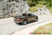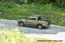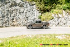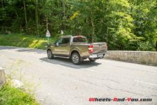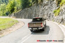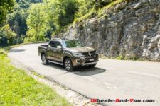Dernier exercice, obligatoire lors de mes virées d’essai, les routes de montagnes. En montée, à un pourcentage d’inclinaison moyennement prononcé, on sent immédiatement que l’Alaskan mobilise toutes ses ressources. Le calme diesel de Monsieur et Madame Tout-le-monde laisse la place à un soufflant moteur de camion, rugissant à plein. A la vue de la dynamique constatée à vide, il est certain qu’avec une benne chargée avec 800 kilos de fournitures, l’Alaskan montrerait très vraisemblablement ses limites, le couple plafonnant à « seulement » 450 Nm.