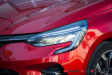 Fondamentalement, les traits de la Clio 5 sont très similaires à ceux de son ancêtre tout en étant 14 mm plus courte. Pour les distinguer, cherchez les détails de finitions bien plus qualitatives sur la nouvelle. Les phares reprennent désormais la signature lumineuse en C qu’on observe déjà depuis la sortie de la Talisman.