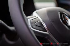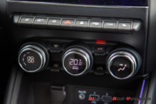 Les commandes de climatisation rotatives viennent certes d’un Duster, mais avec le cercle en alu et les informations affichées en blanc, le rendu est conforme à l’ambiance de l’habitacle. Le volant redessiné intègre davantage de bouton qu’avant, notamment le limiteur/régulateur de vitesse qui a enfin quitté le tunnel central. Bien cachée derrière le volant, la commande déportée de l’autoradio m’a demandé deux jours pour que je la trouve.