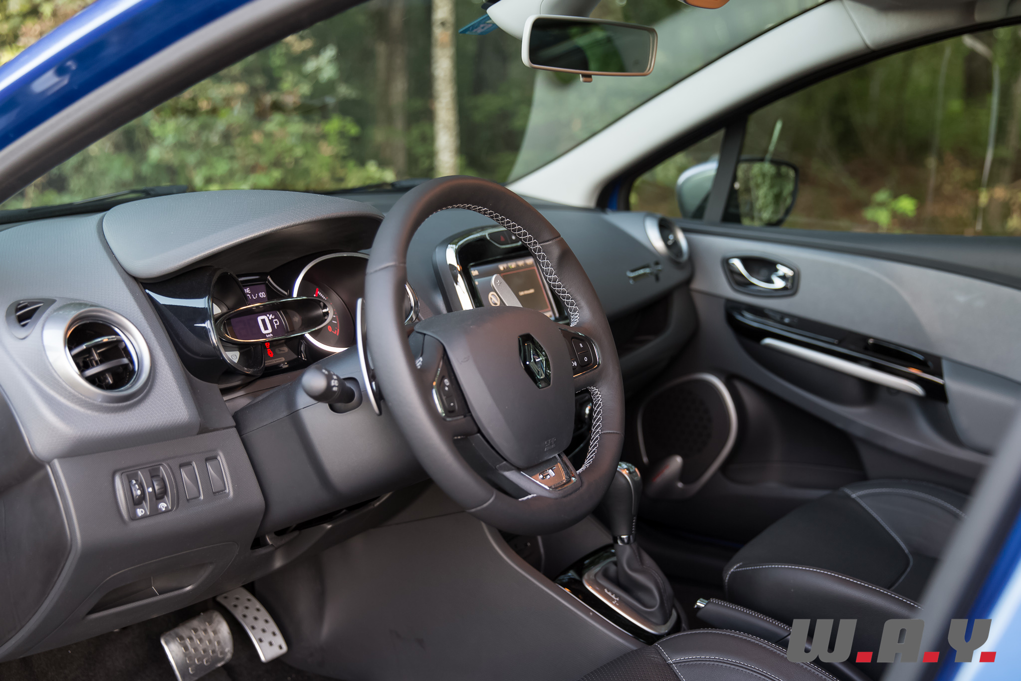 Je retrouve un terrain connu, puisque l’intérieur est quasi identique à la Clio R.S. Seule différence ? Les attributs rouge/orange de la sportive (entourage du levier de vitesses, aérateurs, placages sur le volant) ont laissé place au gris argent sur la « GT ». De quoi rendre encore plus triste un intérieur qui ne brille pas, à la base, par sa gaieté.