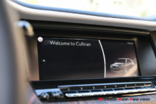 Même lorsqu’il faut se parquer, grâce à une direction presque trop assistée et aux aides électroniques, il est relativement facile de mener ce Cullinan. Les angles carrés de la carrosserie contribuent à bien définir l’encombrement et encore une fois, la quiétude de l’habitacle procure l’apaisement nécessaire au bon déroulement des manœuvres, ainsi qu’à tout déplacement en milieu urbain.