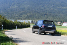 Couplée à une boite automatique à 8 rapports, la transmission se fait sur les quatre roues, une première chez Rolls-Royce. A la vue de la campagne marketing du constructeur démontrant des véritables aptitudes offroad, j’ai été fortement tenté de vérifier tout cela. Malheureusement, pendant mon court essai, l’occasion ne s’est pas présentée et j’admets avec humilité qu’au vu du tarif de ce Cullinan, c’est peut-être mieux ainsi. J’en discuterai quand même une prochaine fois avec le responsable de la marque chez Rolls-Royce Motor Cars Geneva car je connais un chemin pas loin de chez eux qu’il serait amusant de parcourir.