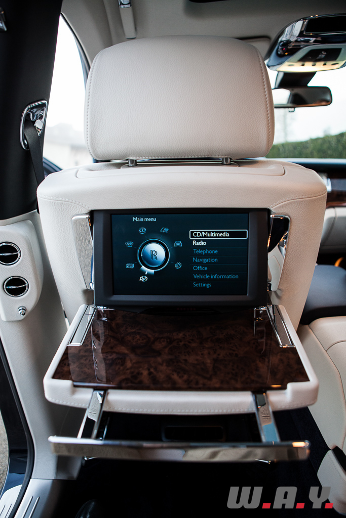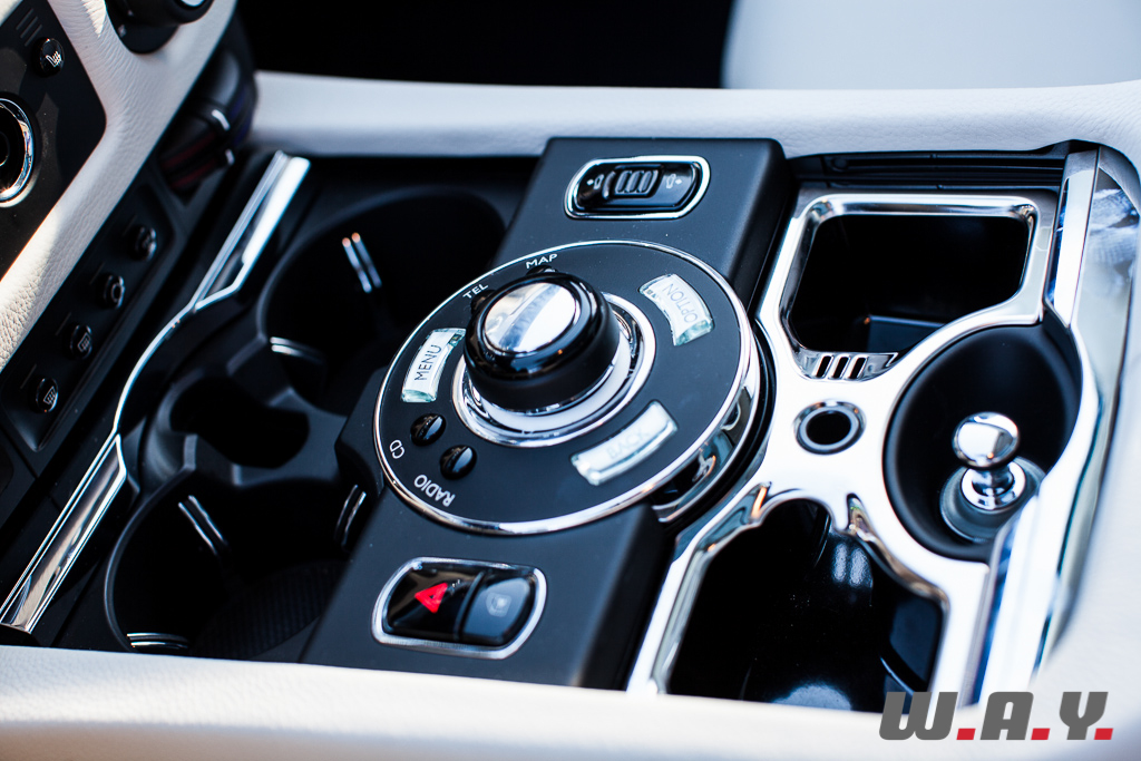 D’une façon générale, la disposition des boutons et des différents leviers est claire et parfaite. De plus, et c’est remarquable malgré l’armada d’options et d’assistances à bord de ce type de véhicule, tout est parfaitement intégré et rien ne semble superflu. Pour moi, ce genre de constat est un tour de force car combien de fois je me suis retrouvé dans un véhicule beaucoup plus modeste mais avec une profusion de boutons et leviers absurdes ? A bord d’une Ghost, tout est intuitif et simple à utiliser au point qu’on en vient à oublier tous les éléments qui sont configurables de la sonorisation aux assistances de conduite.