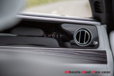 Néanmoins, comparativement à la voiture de Monsieur Tout-le-Monde, ces éléments sont très bien finis, mais contrastent franchement avec la qualité des assises, qui se parent de gaufrages et de passepoils, avec le plafonnier « Shooting Starlight », hypnotisant, ou l’inscription illuminée « Ghost » parant la planche de bord.