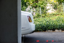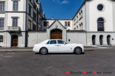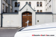 On aime ou on n’aime pas, mais je peux vous assurer que le regard des badauds qui se posent sur la voiture est stupéfait ou halluciné, au choix ou en même temps. Il faut dire que les 5.7 mètres de long et la largeur de 2 mètres dans un blanc immaculé (English White) y sont pour quelque chose, ainsi que cette énorme calandre et ce capot interminable juché sur des jantes de 22 pouces (option à CHF 8’800.-).