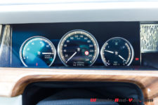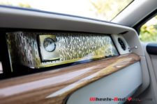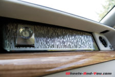 Pour être honnête, comme Rolls-Royce appartient à BMW, j’avais peur de me retrouver dans un véhicule bourré de manettes ou avec une avalanche de boutons. Or il n’en est rien. Tout est assez sobre avec une magnifique planche de bord couverte d’un verre invisible et qui laisse apparaître une magnifique grille métallique facturée CHF 12’900.-, mais elle s’apparente un peu à une œuvre d’art (ce n’est pas ironique). Il y a peu de boutons et le constructeur se permet même de laisser des accessoires, molettes ou manettes d’un autre temps, comme un clin d’œil au passé.