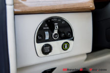 Pour commencer, au moment où je prends place, je presse un bouton sur le tableau de bord pour gentiment fermer ma portière et laisse le système d’assistance verrouiller la porte (ce système ne fonctionne pas si le véhicule est perpendiculaire à une pente un peu prononcée). Puis, pendant que j’appuie sur la pédale de frein, je presse le bouton de démarrage et j’entends à peine les 12 cylindres s’ébrouer.