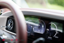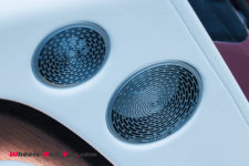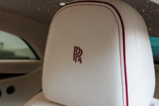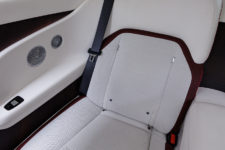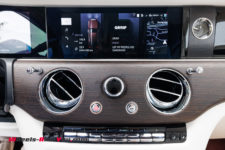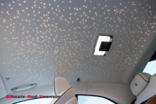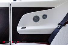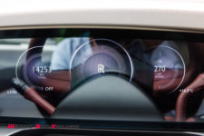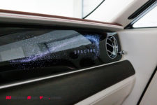 Ce minimalisme et la qualité de l’écran est très appréciable pour les yeux mais les ingénieurs ont tout de même voulu offrir quelque chose de spécial aux futurs propriétaires : l’aiguille virtuelle du compteur de vitesse évolue dans un nuage de petites étoiles qui rappelle le plafond Starlight Headliner aux quelques 1’500 étoiles. Notez que si vous êtes fan d’une constellation en particulier, vous pouvez demander à Rolls-Royce de la reproduire au plafond. Autre détail, la planche de bord du côté passager arbore une section avec 5’500 LEDs qui reflètent l’aile de la mascotte “Spirit of Ecstasy”. Tous ces éléments sont discrets et ne font que révéler le savoir-faire d’une marque centenaire.