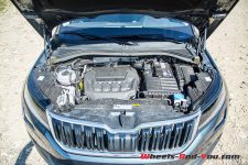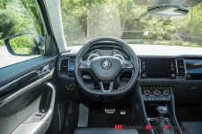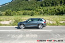 Notre véhicule d’essai emporte le plus gros des deux cœurs essence et la boîte à double-embrayage. Malgré le poids de la bête, je suis agréablement surpris par le dynamisme de ce 2.0 litres qui délivre avec panache de franches accélérations. On est bien sûr loin de tout accent sportif, cependant, qu’importe le terrain bitumé, ce Kodiaq se meut avec aisance, mais avec une certaine gloutonnerie. Après 1’830 kilomètres parcourus, je constate une consommation générale de 10,64 l/100km, avec un pic à 14.55 litres en milieu purement urbain contre 7.97 pour un trajet uniquement autoroutier.