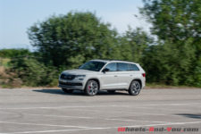 J’ai un peu de sous virage en arrivant vraiment fort en descente sur certaines courbes serrées, mais rien de méchant. Les aides électroniques veillent. Dommage que le centre de gravité soit situé si haut car franchement déjà là, c’est un véhicule plaisant à conduire. Je n’ose imaginer le même SUV 15 cm plus bas. Ce ne serait plus un SUV, me souffle mon cerveau gauche ! Pour résumer, dans les appuis, même en mode Sport, on sent le poids et la hauteur de l’engin. Sans vraiment s’affaisser en virage, il fait vite comprendre quand la limite est atteinte. Dommage car le moteur pousse à aller plus loin mais après ce sont les pneus qui commencent à crisser et demander grâce. Avec ce Kodiaq RS il y a vraiment de quoi rouler vite et en toute sécurité sur de belles enfilades.