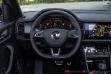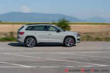 Niveau consommation, j’ai mesuré une moyenne de 7.8 l/100km tout au long de mon essai. Cela aurait pu être mieux, mais j’admets n’avoir pas rechigner à exploiter ce Kodiaq RS. En attaquant fort sur un parcours mixte de 350 kilomètres, je suis aux environ des 10.0 l/100km. Pourtant ce Skoda intègre un système de récupération d’énergie au freinage afin de diminuer la consommation. Peut-être que je ne freine pas assez !