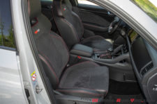 Ceux qui pensent encore que Skoda est une marque low cost, sachez que nous sommes ici dans une voiture aux finitions plutôt proches d’un premium. Le tableau de bord est digne d’une Audi, les ajustages sont parfaits. L’écran central bien intégré propose la gestion du véhicule et du multimédia/GPS. Les sièges cuir alcantara sur coutures rouge et badgés VRS sont magnifiques offrant suffisamment de maintien sur route ouverte.