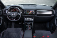 La ligne du Kodiaq ne change pas pour ce badge. L’arrière est dans ce qui se fait actuellement sans vraiment apporter quelque chose de plus en terme de design, hormis des feux full LED. Esthétiquement on est entre un Seat Tarraco et un BMW X3. L’avant est plus prometteur et cette calandre devenue noir laquée et spécifique à ce modèle est une réussite. Pour ce RS il y a en plus des diffuseurs à l’avant comme à l’arrière, renforçant le côté sportif de ce SUV.