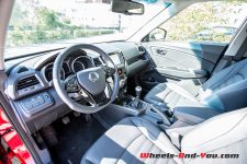 Nous testons ici la version diesel à boîte manuelle et quatre roues motrices (selon sollicitation). Ce qui surprend immédiatement, c’est la dynamique spéciale du moteur. Si les spécifications techniques indiquent un couple max disponible dès 1’500 tours par minute, force est de constater que, dans les faits, tout le couple débarque dans les alentours des 2’200 t/min. On a alors droit à un surprenant boost, très relatif cependant. Ce comportement de narcoleptique est franchement déroutant et passer les vitesses haut dans les tours va à l’encontre de la bonne habitude de conducteur éco responsable que je tente d’être. Ajuster son rapport devient presque un jeu de stratégie, ce qui peut s’avérer à la longue un brin fatiguant, d’autant que le levier de vitesse n’est pas un modèle de souplesse.