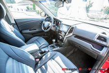 Ce défaut vient entacher les qualités comportementales de la sud-coréenne. En effet, le châssis et l’amortissement maîtrisent bien le roulis et le crossover grimpe sans difficulté, pour peu qu’on laisse traîner en longueur chaque rapport. La dynamique est soutenue par la modularité de la transmission qui, dans son état normal, est une traction, mais devient intégrale si la sollicitation devient trop importante. On peut sentir en pleine grimpe le système se mettre en branle et apprécier l’assistance apportée par ce dispositif. Il est aussi possible de verrouiller le différentiel inter-ponts, répartissant le couple de manière équitable sur chaque essieu.