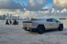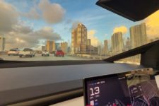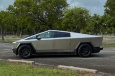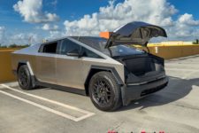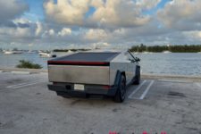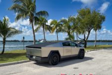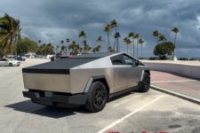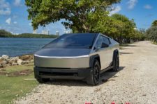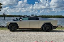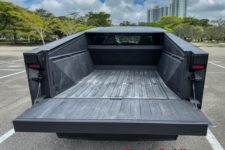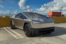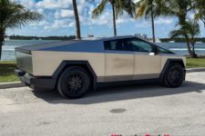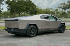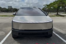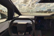 L’expérience à bord de ce véhicule reste intéressante. Le look totalement lunaire attire encore les regards et le véhicule fait preuve de certaines qualités routières. La carrosserie en acier n’est pas peinte et difficile à garder propre, les traces de doigts demeurant bien visibles. Un fort pourcentage des Cybertruck rencontrés aux USA sont d’ailleurs recouverts d’un film donnant un aspect un peu plus qualitatif, soit dans une couleur flashy, soit en finition noir mat.
