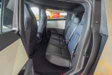 Avec pratiquement 5.70 m de long pour 2.41 m de large aux rétroviseurs, le Cybertruck est imposant pour un européen mais ses dimensions sont assez standards pour un pick-up aux USA. Son poids annoncé atteint 3’025 kg avec une répartition équilibrée entre les essieux avant et arrière. Sa charge utile est de 1’000 kg alors que le pont arrière, une fois le volet roulant électrique rétracté, offre une plateforme de chargement de 1.85 par 1.30 m. La hauteur utile sous le volet fermé varie entre 50 et 73 cm alors que le volume utile s’élève à 1’590 litres. Les sièges arrière peuvent être relevés pour libérer un volume de chargement intérieur de 1’530 litres supplémentaires. Enfin, l’avant propose un coffre de 200 litres. Le Cybertruck AWD peut remorquer jusqu’à 5 tonnes.