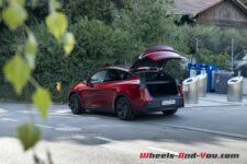 Aucune buse d’aération n’est visible ; l’air entre dans l’habitacle par une fente sur toute la largeur du tableau de bord, masquée entre ses parties supérieure et inférieure. A l’arrière, les passagers ont accès aux réglages de climatisation par un écran tactile. Des ports de recharge USB-C sont également présents. La place sur la banquette arrière est royale, avec beaucoup de profondeur disponible.