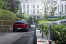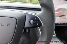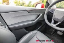 La voiture est équipée d’une pompe à chaleur pour réduire l’énergie nécessaire au chauffage. Les freins à disque (355 mm à l’avant et 335 mm à l’arrière) assurent les freinages puissants en complément de la régénération. Avec 2.4 tours de butée à butée, la direction est assez directe mais le diamètre de braquage de 12.13 m est plutôt médiocre, ce qui est peu pratique pour une voiture de cette taille. Quant au poids, Tesla ne le communique pas mais Internet indique 2’054 kg à vide.