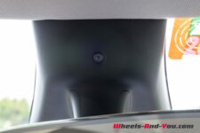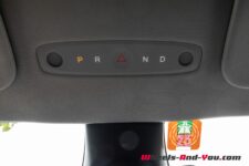 Le volant comprend, de chaque côté de son axe horizontal, une roulette et deux boutons. A gauche, il y a un commodo pour la commande des clignotants. Au-dessus du pare-brise, on trouve le bouton pour l’enclenchement des feux de détresses. Si on effleure ce panneau, la commande de transmission de la voiture P-R-N-D apparaît. De manière “normale”, commander la marche avant ou arrière s’effectue en glissant son doigt vers le haut ou vers le bas à gauche en haut de l’écran principal.