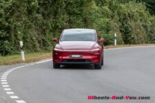 Notre véhicule de test est une propulsion grande autonomie (Long Range RWD), donc le modèle sensé proposer l’autonomie maximale de la gamme actuelle. Tesla ne communique guère sur les données techniques de ses voitures mais il semble que cette nouvelle déclinaison ait la même électronique de commande (FSD 4) que la version qu’elle remplace. La batterie et le moteur à aimants permanents semblent également identiques. Ainsi, la batterie aurait une capacité nette d’environ 75 kWh pour une tension nominale de 345 V (350 V à partir de juillet 2025). La puissance totale atteindrait 250 kW (340 ch) pour un couple de 450 Nm.