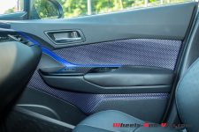 L’environnement intérieur est à l’image de la robe de la voiture : tout en design et en originalité. Dans ce véhicule d’essai, l’ambiance est très bleutée, comme en témoignent les panneaux de contre-porte à motif en relief, ou la ligne filant d’une portière à l’autre en passant par la console de bord. Sur cette dernière trône un réactif écran tactile de 8 pouces qui emporte un système d’infodivertissement ergonomique et de navigation efficace. La résolution du moniteur est par ailleurs excellente, servant idéalement la caméra de recul.