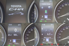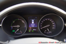 Sur autoroute, la consommation relevée est celle d’une voiture moderne, le moteur électrique n’intervenant que rarement et uniquement sous 120 km/h. Je peux rouler à 100 km/h en tout électrique, mais seulement sur une faible distance, le but étant de ne jamais passer (ou pas trop longtemps) dans la zone Power du cadran situé en lieu et place du traditionnel compte-tours moteur et de rester au plus bas dans la zone Eco. L’efficience énergétique de cette mécanique est au rendez-vous et l’on peut gérer sa consommation ainsi que son mode de conduite en surveillant les infos données dans le menu. A voir si, dans l’avenir, Toyota nous proposera, comme sur la Prius, une version rechargeable permettant de rouler encore plus longtemps en tout électrique.