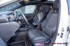 La gamme moteurs de la Toyota Corolla Touring Sports s’articule sur trois blocs. Tout d’abord le 1,2 litre turbo essence, qui peut se coupler avec une boîte manuelle ou la boîte CVT. Ce dernier affiche une puissance de 116 ch et un couple de 185 Nm. Par ailleurs, on retrouve le bloc 1,8 litre dans une configuration tout hybride. Systématiquement allié à la boîte e-CVT (electronically-controlled continuously variable transmission), il développe 122 ch et 142 Nm de couple. La dernière configuration possible, celle équipant notre modèle d’essai, est le bloc de 2 litres tout hybride, lui aussi associé obligatoirement à une boîte e-CVT. La puissance affichée est de 184 ch tandis que le couple plafonne à 190 Nm.