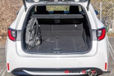 En matière d’habitabilité, la Corolla Touring Sports est généreuse sur le volume avant, avec un confort et un maintien des sièges vraiment bons. Pour les occupants arrière, c’est une donne différente : la banquette est d’une tendresse relative et l’espace aux jambes ainsi qu’au-dessus de la tête est réduit, ce qui particulièrement péjorant pour les personnes mesurant plus d’un mètre huitante-cinq. A titre personnel, je m’y sens confiné et pas nécessairement à l’aise. Le coffre, quant à lui, affiche 598 litres dans sa configuration normale. La disposition banquette baissée passe le chiffre à 1’606 litres. On est là dans la section haute du segment des propositions en matière de capacité de chargement.
