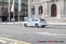 Là où jusqu’alors régnait la sérénité, j’ai désormais droit à une mécanique de 2 litres qui hurle, me laissant penser que trône dans la baie moteur un générateur. Plus que la perturbation sonore, c’est le manque flagrant de vigueur qui me saisit le plus. L’agrément de conduite prend ainsi une claque, les relances étant molles et longues. Si la sortie d’épingles est bien soutenue par la partie électrique, quand l’état de la batterie le permet, l’accélération entre deux lacets finit par devenir un vrai labeur. Mais, il faut le dire, toujours dans une grande souplesse mécanique.