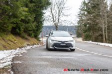 En dehors de ce net écueil, la Corolla Touring Sports laisse apparaître un châssis très équilibré et très sain. La tenue de route est remarquable et le décrochage lors des passages appuyés en virage est sain. La prise de courbe se fait dans un roulis contenu et le train avant plonge avec facilité à la corde. Mieux encore, la partie roulante réagit très bien à l’ajout d’angle dans la direction, allant précisément là où je veux. C’est, sur ce point, une belle réussite.