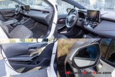 Le premier contact, visuel, est vraiment bon. Comme indiqué auparavant, je suis assez fan de cette génération de Corolla. Elle est moderne, avec du caractère. L’entrée dans l’habitacle fait perdurer la bonne impression. Dans l’absolu, je ne suis pas client de ce type d’intérieur, trop générique, sans folie ou originalité. Je préfère les concepts assumés, les partis pris tranchés, avec une nette préférence pour les volumes centraux ouverts et une réduction drastique des boutons. Néanmoins, force est de constater que cette Corolla Touring Sports est bien finie et facile à l’usage. Tout tombe sous la main, les écrans sont de bonne facture, les systèmes embarqués efficaces, malgré quelques latences constatées plus tard sur les capteurs avant.