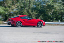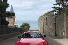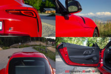 En mode Normal, le son est sympa. Ce n’est pas tonitruant mais en accélérant à peine on devient déjà vite un truand, un délinquant. Je pense que jamais je ne l’ai été autant. Même les écolos chercheront à me pendre – c’est écologique la pendaison non ? – mais va falloir courir ou pédaler vite. En effet, une fois le moteur en route, il faut y aller pour me suivre. D’abord les cols. Position Sport pour voir si je peux postuler pour le prochain Fast and Furious (celui qui dit que je suis trop vieux, je l’attends pour faire le 100 mètres, toujours sans les haies). Première, deuxième, troisième, quatrième, l’avant se cabre et le long capot prend la direction du ciel. Moi aussi, vous savez le septième ! Je ne vous dirai pas la vitesse atteinte car il faut freiner pour tourner. L’avant plonge et mord l’asphalte, je braque et remets « gazou ». L’arrière glissote et me fait une gentille dérobade jugulée de suite par l’électronique. Le différentiel actif avec fonction Torque Vectoring aide certainement beaucoup. Les super Michelin Pilot Super Sport de 275 mm de large à l’arrière font aussi leur travail à merveille. En débranchant toutes les aides, vous pouvez entretenir de belles glissades mais là, il faut savoir contre braquer…Une chose est sûre, ça pousse. L’avant se cherche un peu, ça bouge en latéral et le volant à la sensation « caoutchouteuse » n’est pas très agréable à manier. Rien à voir avec la précision d’un Cayman, mais on régate pas tout à fait dans la même classe.