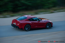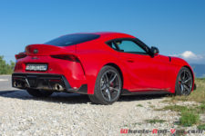 Puissance et couple transmis uniquement aux roues arrière via une boîte auto huit rapports et un différentiel piloté électroniquement. Adieu au fameux « N55 » de 2’989 cm3 et bienvenue au B58B30M1. Les cotes diffèrent. L’alésage perd 2 mm et la course s’allonge de 5 mm. Un moteur comme seuls les ingénieurs motoristes BMW savent les faire. Toyota perd un peu de son âme mais ne perd pas tout. Le son de ce L6 est, malgré les normes actuelles, un des plus beaux que propose cette catégorie de véhicules. Il faut dire que la concurrence est bien souvent déjà passé au quatre cylindres. Monsieur Tetsuya Tada lui-même est très fier du résultat obtenu en terme de son aussi bien en mode Normal qu’en Sport.