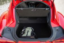 Avec un coffre de seulement 290 Litres, il faudra cependant bien calculer son coup pour loger ses bagages. Son accès est d’ailleurs possible depuis l’habitacle car aucune séparation ne vient entraver le passage. C’est pratique car, ne l’oublions pas, nous avons à faire à une stricte deux places. Notre voiture d’essai est une version Premium, seule finition proposée pour le moment, qui dispose en série de tout ce qu’on peut attendre de nos jours. Cela va de l’affichage tête haute à la climatisation automatique bi-zone, en passant par le régulateur de vitesse adaptatif avec radar anticollision, de l’accès et démarrage sans clé, aux phares adaptatifs à LED… La liste est longue, un des atouts des marques japonaises, vous comprendrez qu’il n’y a rien à rajouter.