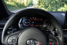 La planche de bord est bien dessinée. L’instrumentation est 100% numérique avec un gros compte tour en face des yeux. Un écran à la sauce « BM » de 8,8 pouces trône sur la planche de bord. Les commandes proviennent de la même banque d’organes et le volant à jante un peu trop fine, ainsi que le levier de vitesse, sont eux aussi d’origine bavaroise. Bref un intérieur très, et peut être pour certains un peu trop, germanique dans une belle nippone. Très sincèrement, cela ne me dérange pas plus que ça. D’ailleurs, il y a pire comme association et le niveau de finition s’en trouve amélioré, rien à voir avec une GT86.